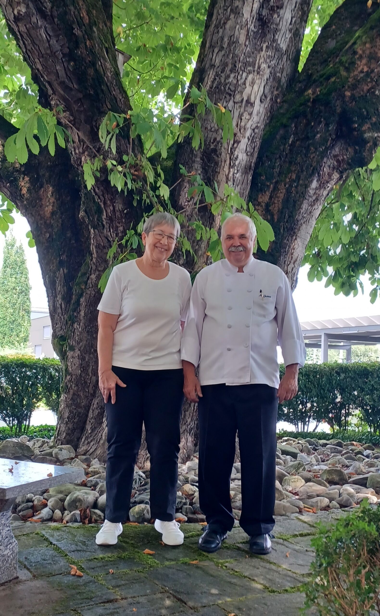Einzigartig ist der Garten, wo im kühlen Schatten der rund 160-jährigen Kastanie bei schönem Wetter getafelt wird. Ob dem Eingang steht die Inschrift ‘Zum Splügen’. Woher dieser Name?